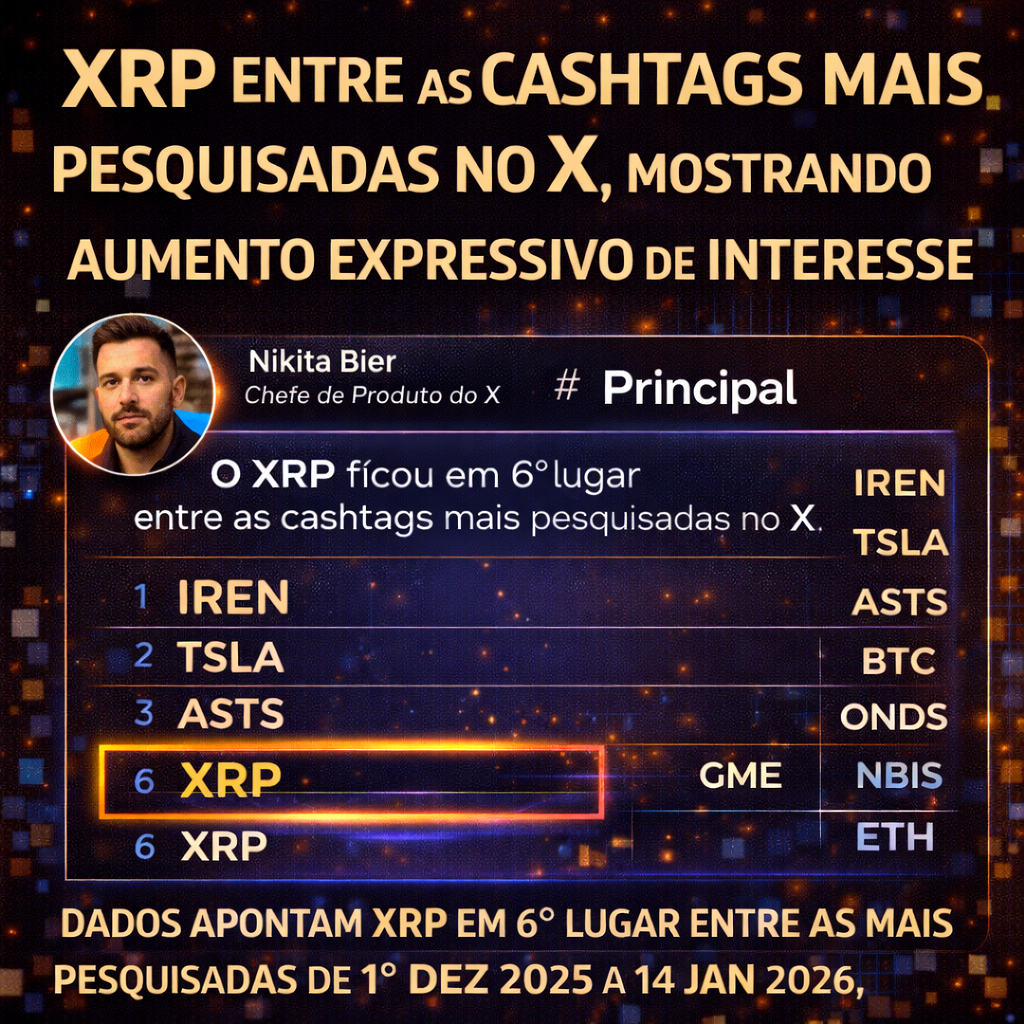 XRP Dispara nas Buscas e Entra no Topo das Cashtags Mais Pesquisadas no X