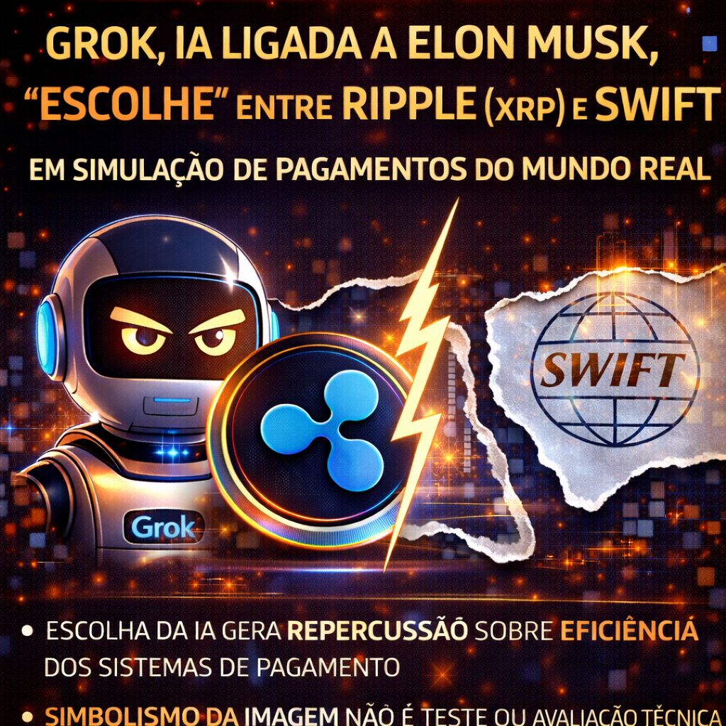 Uma interação recente com a inteligência artificial Grok, associada ao ecossistema de Elon Musk, reacendeu o debate sobre o futuro dos sistemas de pagamento global ao colocar frente a frente a infraestrutura da Ripple (XRP) e a rede tradicional SWIFT. Em vez de responder com dados técnicos ou análises, a IA apresentou uma imagem simbólica,
